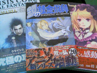 久しぶりに日記書いてみます(´ω`) 自分でカウンター回してる説が強いのですが(苦笑) こんな無更新の日記、見に来てくださってる方がいるようで… うぅ…放置気味で申し訳ない; 暇なんだ…暇なんだが…書くことが無くて日記書けないんだ(つД`) しかも2週間とか言ってたのが手術から2週間だったらしく… う゛っ(つД`)それじゃまだ1週間も経ってないよ; せっかくテレビAQUOSなのに見てるのアニメだけ(笑) 本もコンビニで扱ってないと買えないしな… と言う訳で鋼錬の新刊買ってみましたよ。 もう前の巻とか覚えてないよ┐(´ー`)┌ あとは入院中に届いたロマンとアルティマニア。 星屑の革紐、何度読んでも泣ける(つД`) 曲を聴きながらはマズいよ…号泣だよ(つД`) アルティマニアは相変わらず良い(笑) ミネルヴァは戦乙女みたいなデザインですね。良いですね(´∀`) …ふぅ…暇です(笑) それ以外は普通に元気です。 以上、生存報告でした。 |